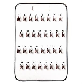 Introducing the NEW Oscar Keyboards. No more broken hooks; strong, large hooks that work best with today's keys. No more masonite; made of lightweight, state of the art material. New material is 1/3 the weight of a masonite board. Easily carry up to 32 keys to your vehicles using the convenient hand grip on this portable keyboard. Rows are offset so keys do not hang on top of each other. Hooks have safety catches so keys cannot accidentally fall off. Size: 13 1/2" wide x 20" tall.