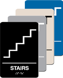 This standard Accessible Braille signage makes it easy for everyone to comply with ADA Laws (Americans with Disabilities Act). Braille signs are made of high impact styrene that can be used indoors or outdoors. All pictograms, borders, lettering and Braille are raised 1/32". ADA signs have radius corners and double faced tape on the back. Braille signs are available in; white lettering and graphics on a light gray field, white lettering and graphics on a blue field, white lettering and graphics on a black field, black letters and graphics on a taupe field.
