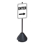 Enter Right Arrow sign with rolling portable pole. Aluminum sign measures 12'' x 18''. The Portable Pole sign comes with base, 48'' pole. Let people know instructions at events with rolling temporary signs.