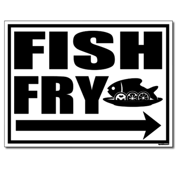 Fish Fry Yard Sign with Arrow - Full Color.24" x 18" Corrugated Plastic Yard Sign. Digital Full color print.Signs are Double sided and include a 15" Sign Stake.Made in the USA!Need more then 10? Call 1-800-513-1695 for quantity discounts.