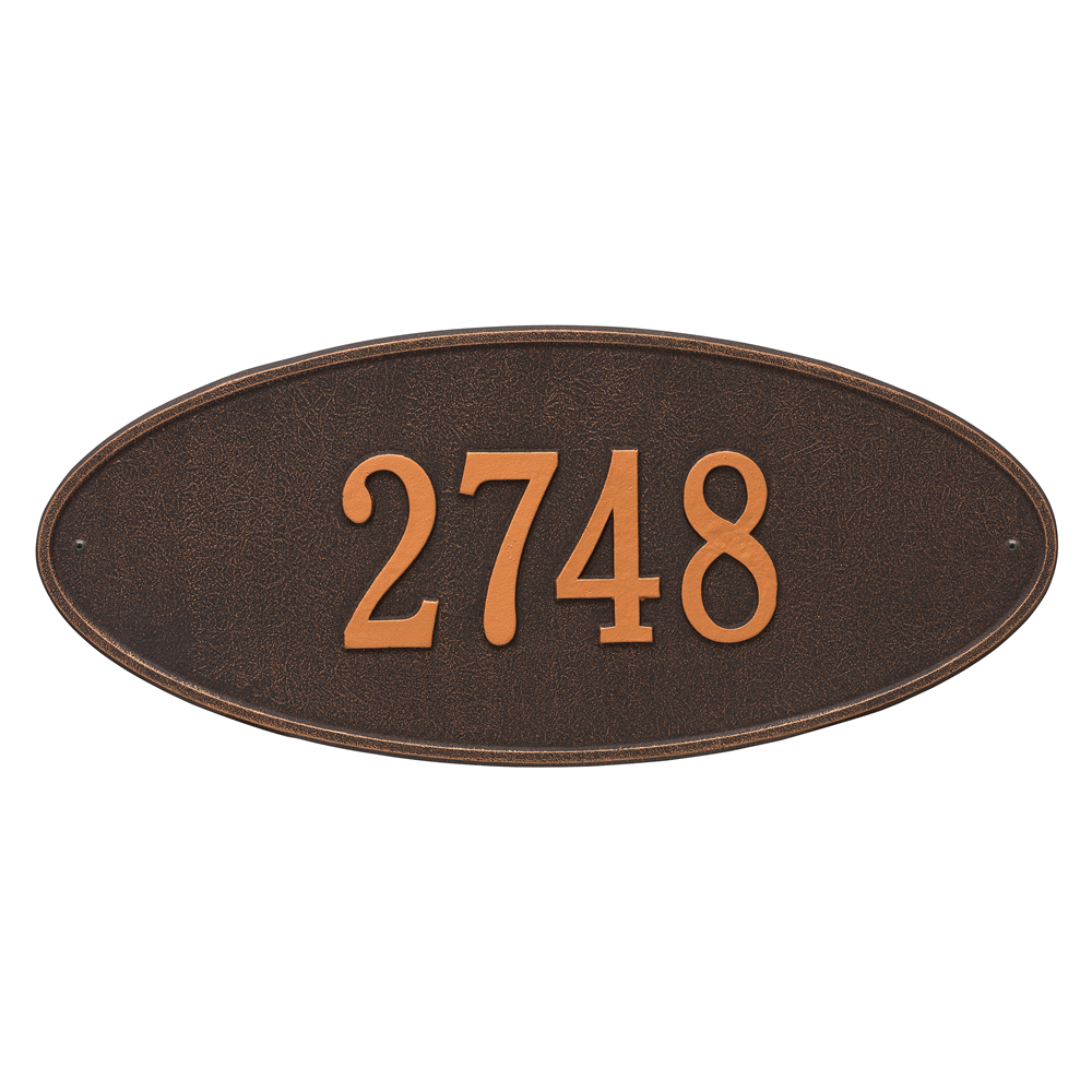 Personalized Address Plaque Madison Oval Estate. 24.5'' x 10.375'' with one line of text. Holds up to five 4.5'' numbers. Estate Size Address Plaques are perfectly suited for larger homes and increased visibility across expansive yards.