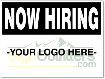 Looking for new employees? Customize your Now Hiring signs with your logo. These 24x18 yard signs will help let people know you hiring. Stay on brand with your logo to personalize the sign. Single sided only. Sign stake included. These Custom Yard Signs are 24 inches Wide X 18 inches Tall - Made from long lasting, weather-proof 4-mil corrugated plastic. Signs are digitally printed full color UV.