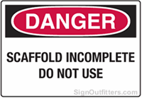 OSHA Sign Legend: DANGER Scaffold Incomplete Do Not Use