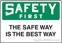 OSHA Safety First Sign - The Safe Way Is The Best Way