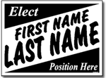 Political Yard Sign Design P52 - One Click Kit. Sign wires included. 24 x 18 yard signs and sign stakes. Two Color Imprint customize with campaign information. Political Yard Sign Two Color Design featuring a nice drop shadow and bold name.