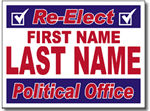 Political Yard Sign Design P108 - One Click Kit. Sign wires included. 24 x 18 Yard Signs and free sign frames. Easy to order kits - customize with your campaign information. Cheap Political Yard Sign Design features large name and wave.