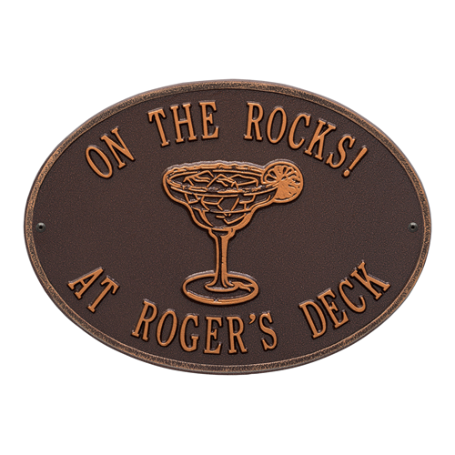 Personalized Margarita Plaque is a truly unique gift for those friends and family who like to throw backyard parties. Features Margarita glass. Sign measures 14.25'' wide x 10.25'' tall. Welcome everyone to your party spot with this personalized Margarita wall plaque! Immediately upon arrival your guests will recognize it’s time to relax and enjoy the company. Made from environment friendly recycled aluminum these signs are weather resistant and will outlast any party you can throw. Each sign is custom made in the USA to your specifications giving you the ability to create the perfect greeting for your guests. Keep the party going at your patio, deck, or backyard and order your custom Margarita sign today!