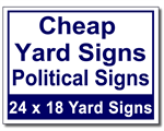 Buy 50 Political Coroplast Yard Signs with stands. Sign stands included. One color imprint on white or yellow corrugated plastic. Political Coroplast Yard Signs with stands in an easy order kits - customize with your information.