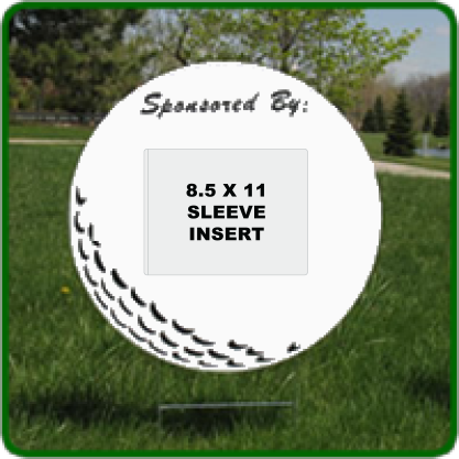 22'' Diameter Golf Ball Hole Sponsor Sign with Clear Sleeve. Includes sign stake.