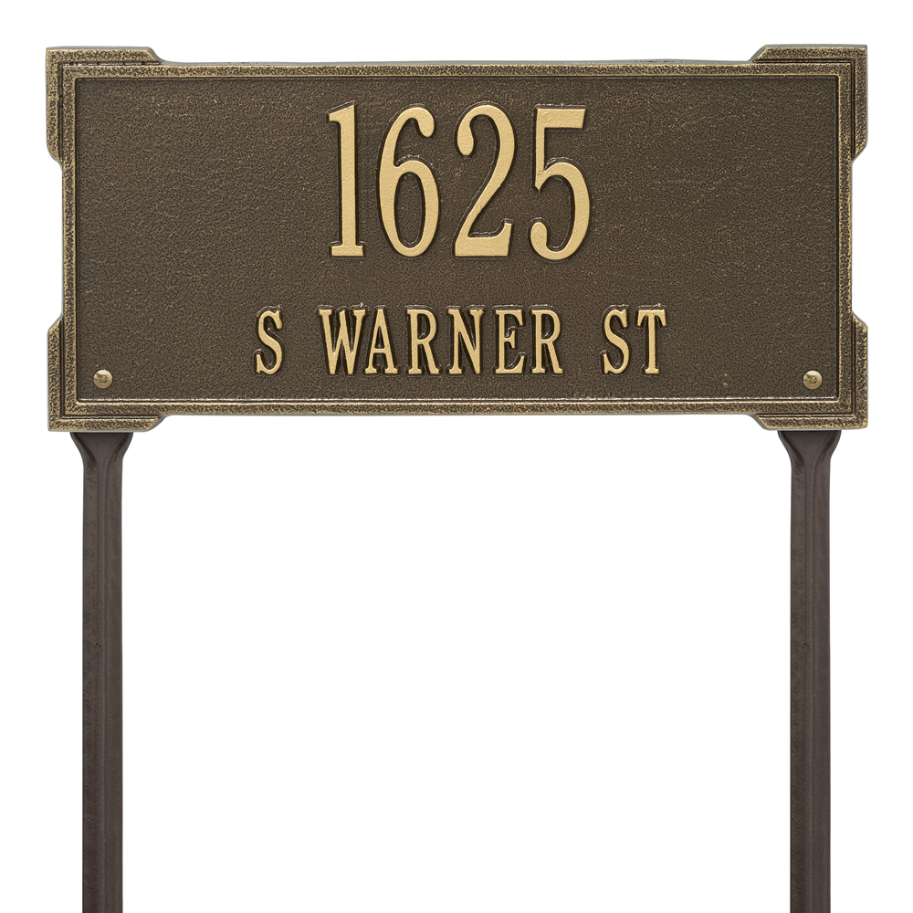 Personalized Address Plaque Hartford Estate. 23.25'' x 10'' with one line of text. Holds up to five 7'' Numbers. Estate size address plaque lawn sign with two stakes.